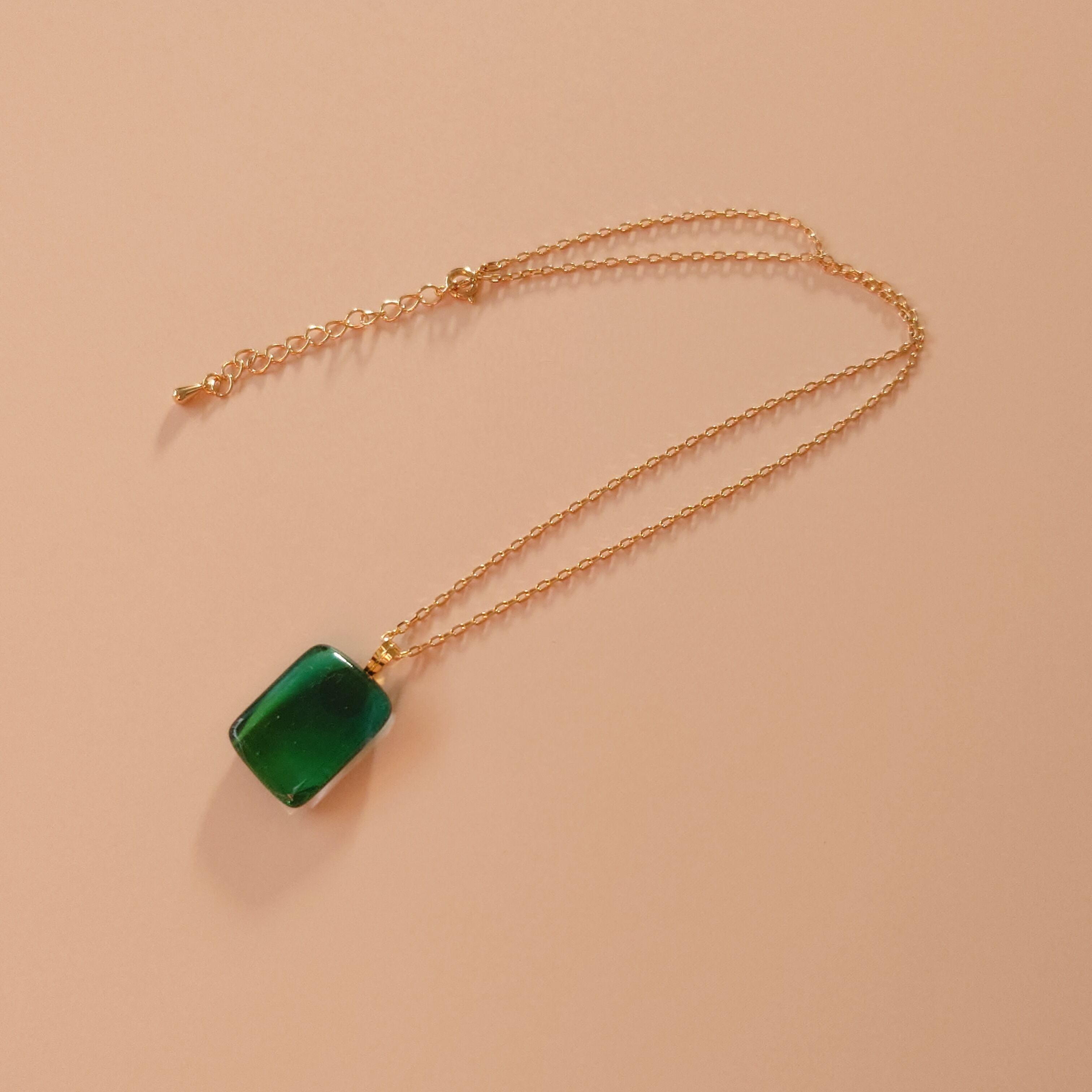 一見すると一色に見える深く印象的な緑色は、よく見るとほんのり黄味がかった緑から青味の深い緑への柔らかいグラデーションになっていて、光の当たる角度や重ねる服の色合いによって様々に表情が変化します。